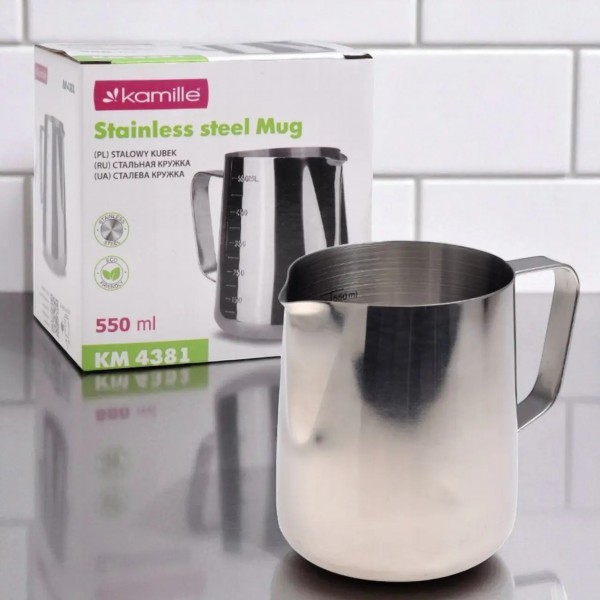 - Призначений для професійного збивання молока, має вузький носик для точного наливання молочної піни.