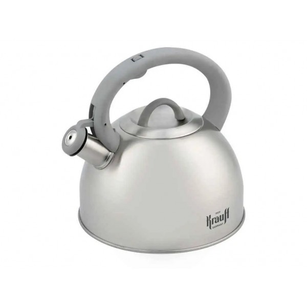 Чайник 2,5 л Krauff 26-242-054 - виготовлений з нержавіючої сталі 18/10, є міцним та надійним. Має бакелітову ручку яка не нагрівається та є зручною та безпечною. Тепло у чайнику рівномірно розподіляється завдяки капсульному багатошаровому дну та пришвидшує нагрів води. Підходить для всіх видів плит, в тому числі індукційних.