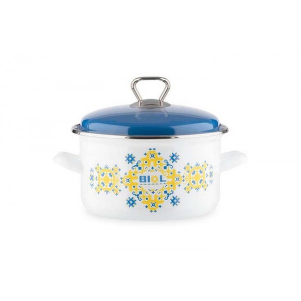 Каструля 2,2 л емальована Вишиванка жовто-блакитна арт.: CE18V1(Біол)