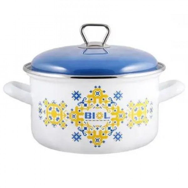 Каструля 5,6 л емальована Вишиванка жовто-блакитна арт.: CE24V1(Біол)