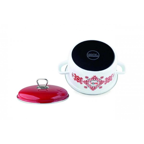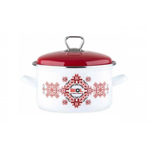 Каструля 3,1 л емальована Вишиванка червоно-чорна арт.: CE20V2 (Біол)