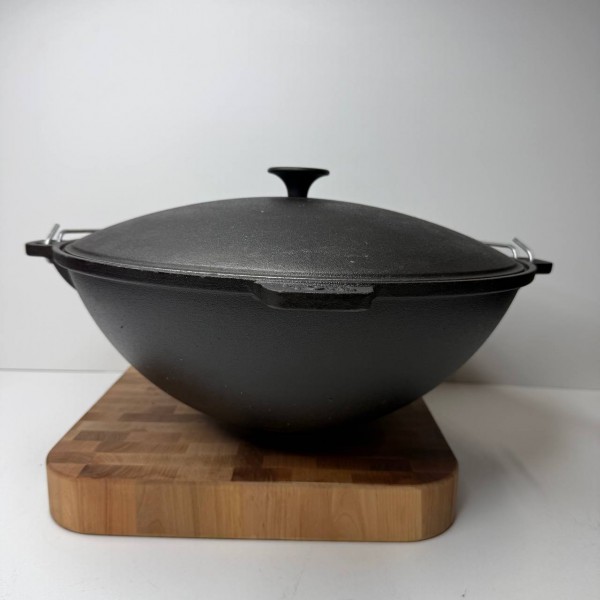 Казан татарський 9 л з кришкою та дужкою - надійний помічник для приготування плову, тушкованих страв, юшки чи каші. Виготовлений з міцного чавуну, рівномірно прогрівається та довго зберігає тепло.