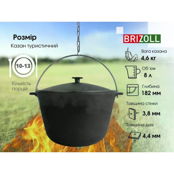 Казан туристичний чавунний з чавунною кришкою 8 л «Туризм» арт.: KТ08-1 (Brizoll). Матеріал: Чавун