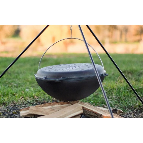 Казан азіатський з кришкою-сковородою 8 л «Азія» - виготовлений з 100% чавуну, є довговічним, термостійким та екологічним. Завдяки сферичному дну з товстими стінками, він забезпечує рівномірне нагрівання і довго зберігає тепло. У комплекті чавунна кришка-сковорідка, яку можна використовувати окремо для смаження.