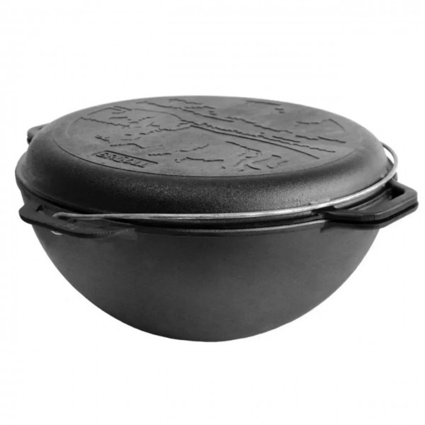 Казан азіатський з кришкою-сковородою 15 л «Азія» - виготовлений з 100% чавуну, є довговічним, термостійким та екологічним. Завдяки сферичному дну з товстими стінками, він забезпечує рівномірне нагрівання і довго зберігає тепло. У комплекті чавунна кришка-сковорідка, яку можна використовувати окремо для смаження.