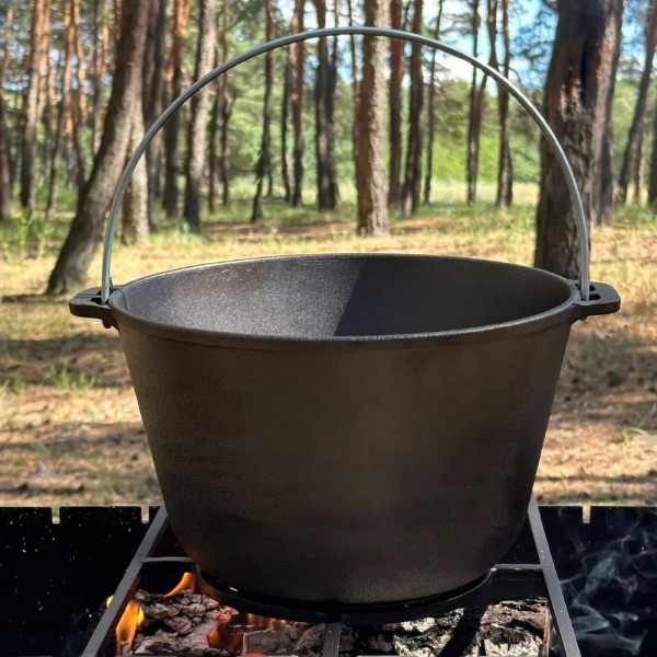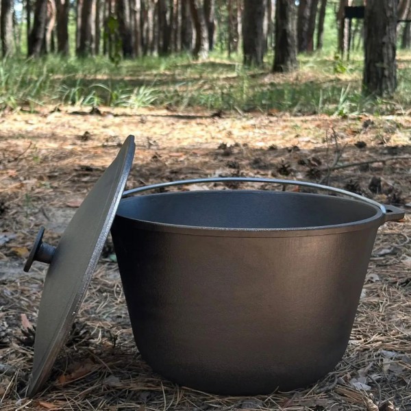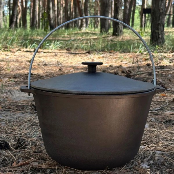 Казан з чавунною кришкою 12 л «Туризм» - виготовлений з 100% чавуну, є довговічним, термостійким та екологічним. Завдяки округлому дну з товстими стінками, він забезпечує рівномірне нагрівання і довго зберігає тепло. У комплекті чавунна кришка, яка щільно прилягає та зберігає соковитість та аромат страв.