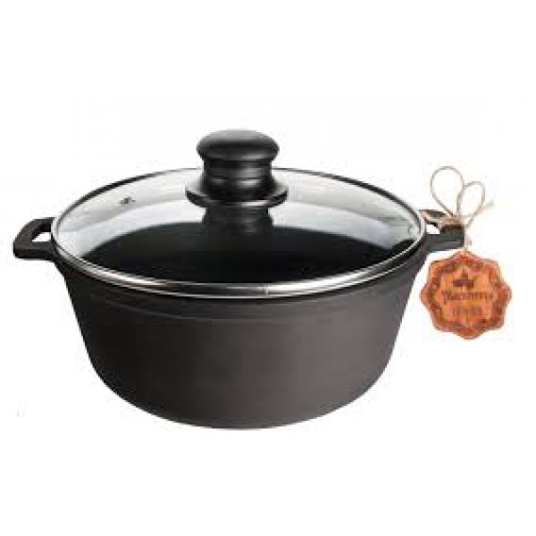 Каструля чавунна лита 5 л з скляною кришкою арт.: Т403СЗУ (S&T). Матеріал: Чавун