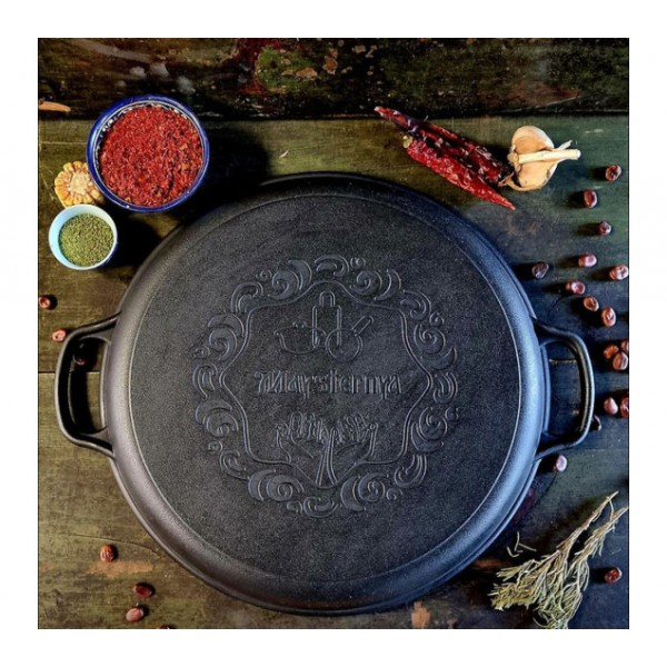 Казан 12 л узбецький з кришкою-сковорідкою гриль - виготовлений з 100% чавуну, є довговічним, термостійким та екологічним. Його форма з повним внутрішнім радіусом і потовщеним дном забезпечує рівномірне прогрівання та ідеальне тушкування. У комплекті чавунна кришка-сковорідка гриль діаметром 40 см, яку можна використовувати як окрему жаровню. Посуд підходить для відкритого вогню, плити та духовки.