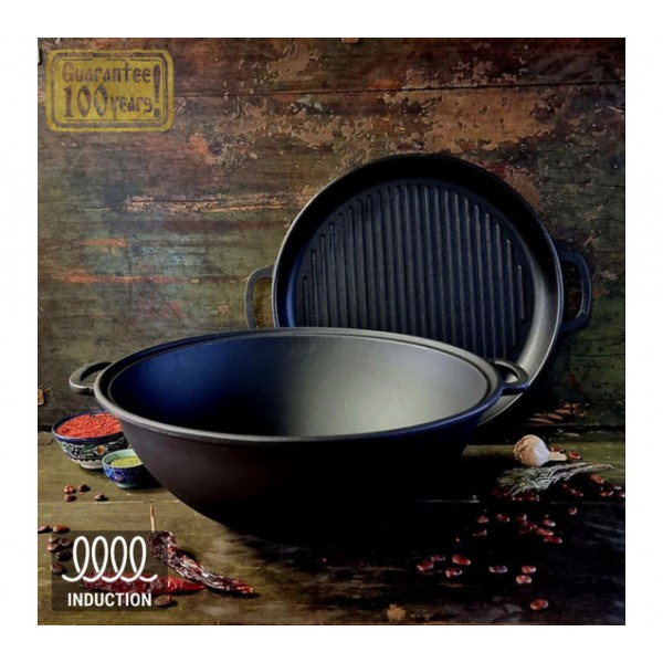 Казан 12 л узбецький з кришкою-сковорідкою гриль арт.: V12CPGrWok (S&T). Матеріал: Чавун