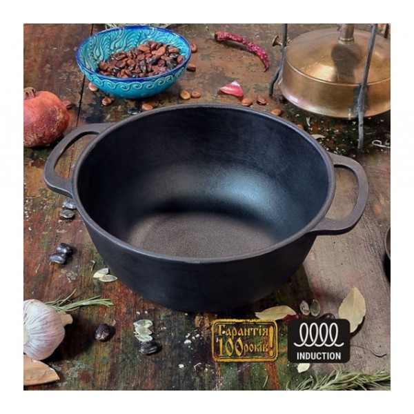 - Кришка: чавунна, 24 см, може використовуватися як сковорода