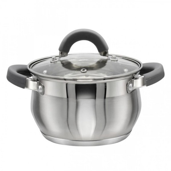 Каструля 5,0 л з нержавіючої сталі (скляна кришка) арт.: ZB-5G Gray (Zauberg)