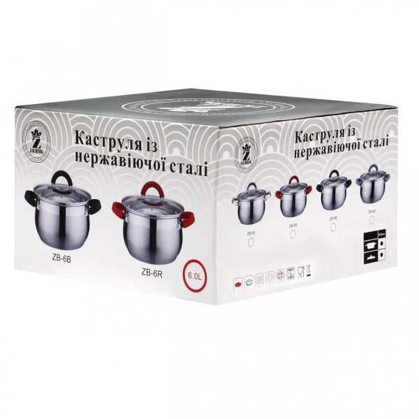 Каструля з кришкою 6 л арт.: ZB-6R RED (Zauberg). Матеріал: Нержавіюча сталь