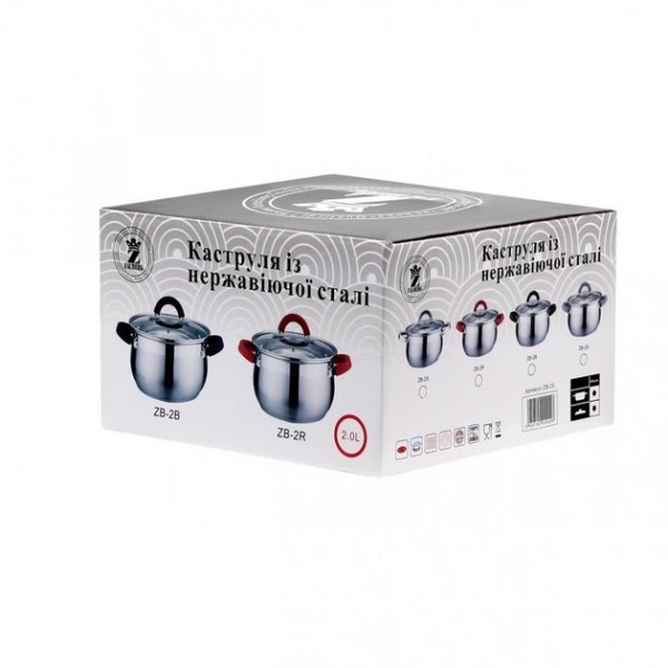 Каструля 2,0 л з нержавіючої сталі (скляна кришка) арт.: ZB-2B Black (Zauberg)