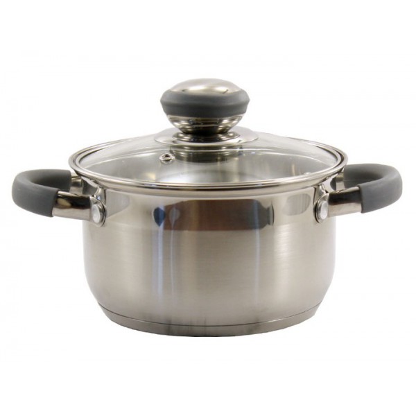Каструля 1,3 л з нержавіючої сталі (скляна кришка) сфера арт.: ZB-1.3CG Gray (Zauberg)