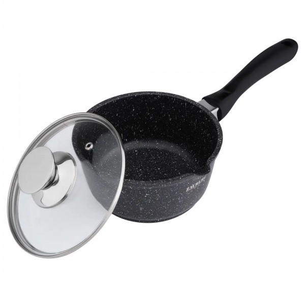 Ківш 2,3 л Мармур арт.: 0720-BL - поєднує у собі сучасний дизайн та практичність. Основа з багатошаровим дном забезпечує швидке та рівномірне нагрівання. Працює на всіх типах плит, в тому числі індукційних. Ергономічна ручка SOFT-TOUCH - не ковзає в руці. Чудово підходить для приготування соусів, крем-супів, молока.