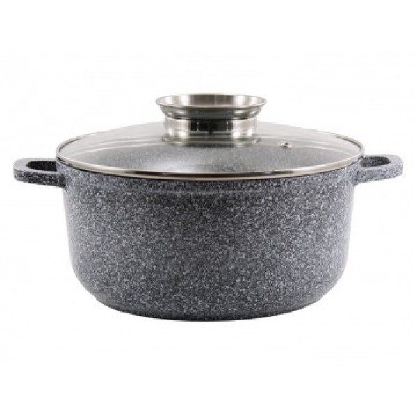 Каструля 1.7 л кругла Мармур арт.: 0318-SN - виготовлена з алюмінію, тепло в таких каструлях швидко розподіляється по всій поверхні. Внутрішнє покриття каструлі є антипригарним, їжа не буде прилипати до її стінок. Підходить для всіх видів плит, в тому числі індукційних. Має прозору зручну кришку з отвором для виходу пари. Каструля має сучасний дизайн, є функціональною та стильною.
