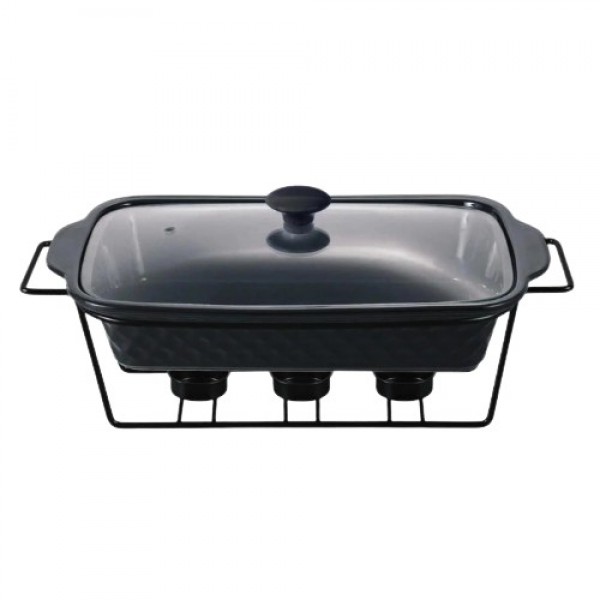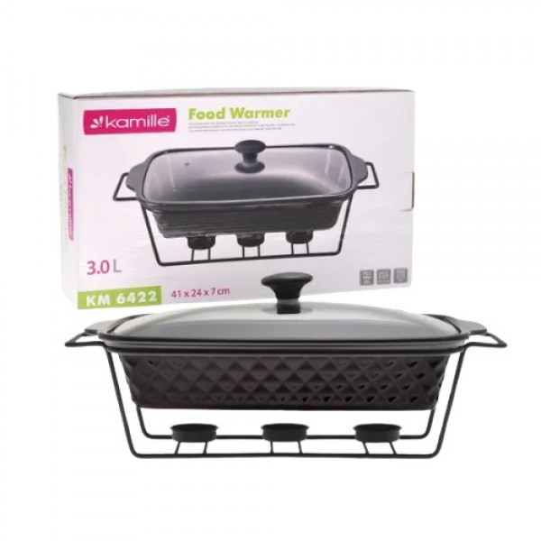 Марміт прямокутний 3,0 л чорний Kamille виготовлений з кераміки, підходить для використання в мікрохвильовій печі та духовці. Корпус металевий з отвором для трьох свічок. Має естетичний вигляд та практичний у використанні.