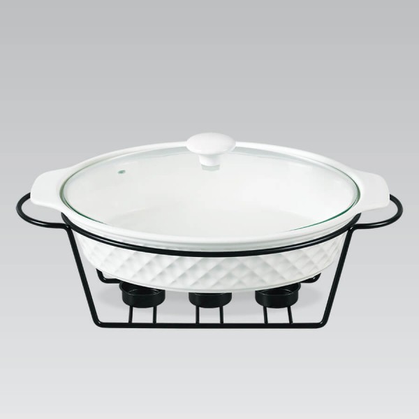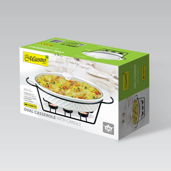 Марміт овальний 1,5 л виготовлений з кераміки, підходить для використання в мікрохвильовій печі та духовці. Корпус металевий з отвором для свічок. Має естетичний вигляд та практичний у використанні.