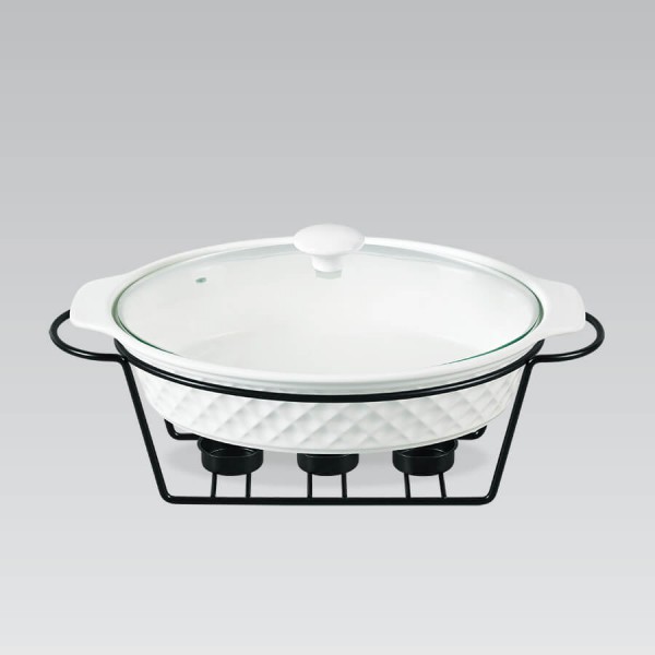 Марміт овальний 1,0 л виготовлений з кераміки, підходить для використання в мікрохвильовій печі та духовці. Корпус металевий з отвором для свічок. Має естетичний вигляд та практичний у використанні.