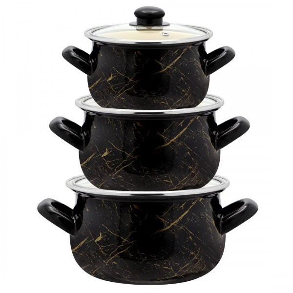 Набір каструль емальованих 3 шт «Чорний мармур» арт.: 700 (Interos)