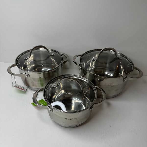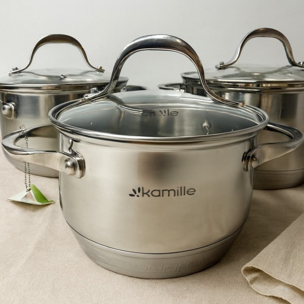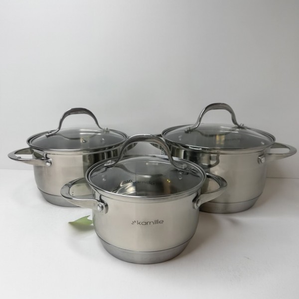 Набір кастрюль 6 предметів (1,8л,2,3л,3,3л,) арт.: KM-4706S (Kamille). Матеріал: Нержавіюча сталь