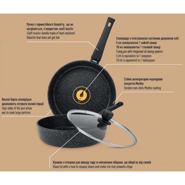 - Покриття: антипригарне мармурове;