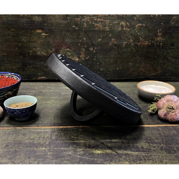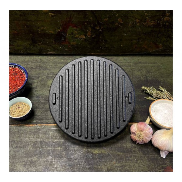 Прес-гриль чавунний круглий 20 см/ 3,3 кг MS210 S&T - надійний інструмент для рівномірного прожарювання м'яса, овочів чи коржів. Виготовлений з масивного чавуну вагою 3,3 кг, він забезпечує стабільний тиск і збереження тепла. Завдяки бортикам його можна використовувати навіть із вугіллям, а натуральне покриття з олії після прожарювання захищає поверхню від корозії. Ідеально для гриля, мангалу чи професійній кухні.