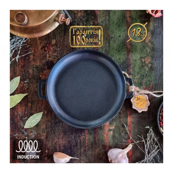 Жаровня чавунна лита 18×2,5 см HoReCa Т101 S&T - компактна порційна жаровня з литого чавуну ідеальна для індивідуальної подачі страв у ресторанах, кафе або вдома. Завдяки високій тепловій емісії чавун забезпечує рівномірне пропікання, зберігаючи соковитість та аромат.