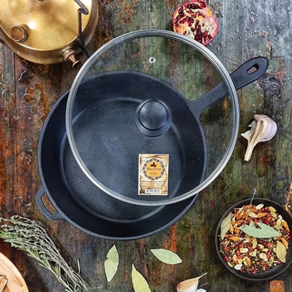 Сковорідка чавунна лита 26×6 см зі скляною кришкою арт.: Т203СзУк ( S&T) Матеріал: Чавун