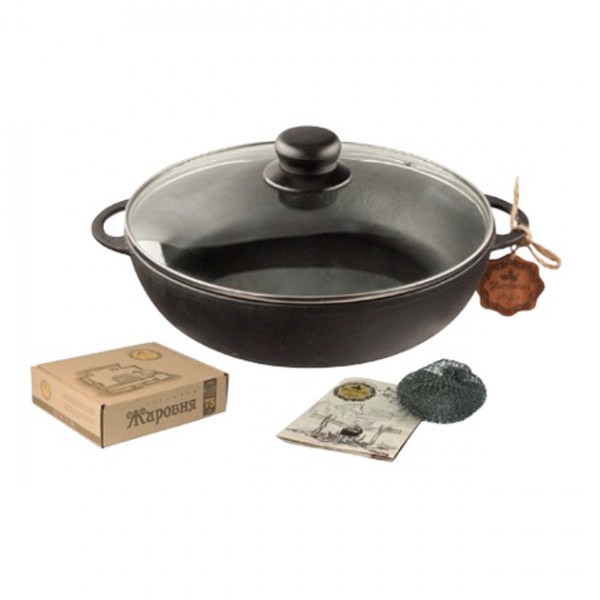 Жаровня чавунна лита 26×6 см з скляною кришкою арт.: Т103СзУк (S&T)