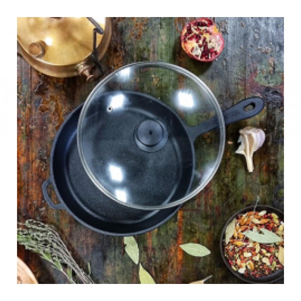 Сковорідка чавунна лита 22×4 см зі скляною кришкою арт.: Т2012Сз ( S&T) Матеріал: Чавун