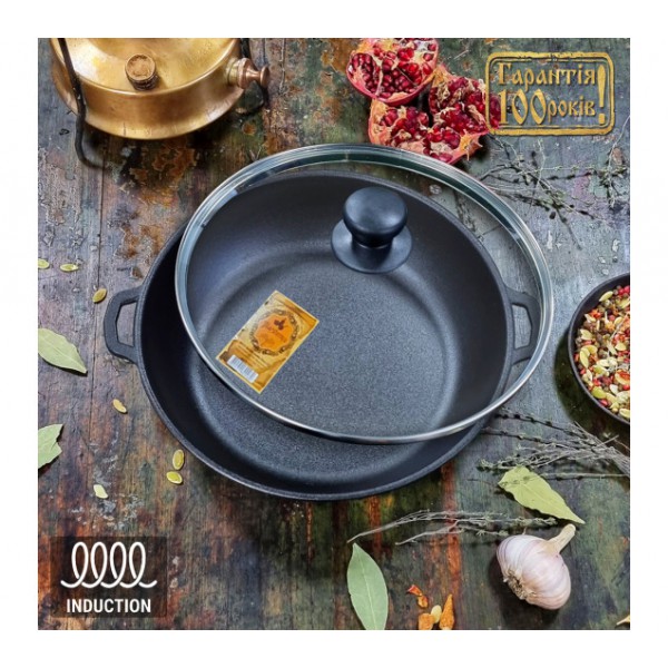 Жаровня чавунна лита 20×4 см з скляною кришкою арт.: Т1011СзУк (S&T)