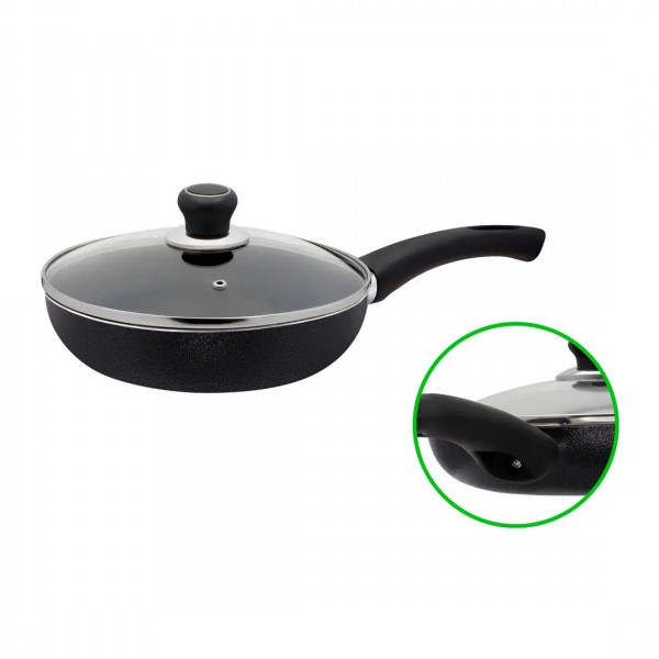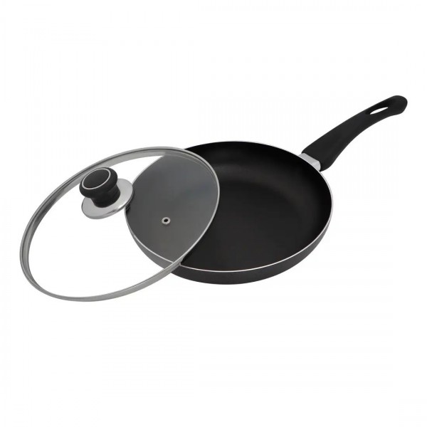 Сковорода 20 см з скляною кришкою - це алюмінієва сковорода з мармуровим антипригарним покриттям та скляною термостійкою кришкою. Ідеальна для приготування яєшні, млинців та невеликих порцій м'яса.