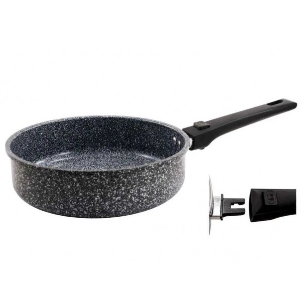 Міцна та практична сковорода діаметром 28 см та висотою 7,5 см - чудовий вибір для тушкування, смаження та приготування об'ємних страв. Виготовлена з алюмінію, швидко нагрівається та рівномірно розподіляє тепло.