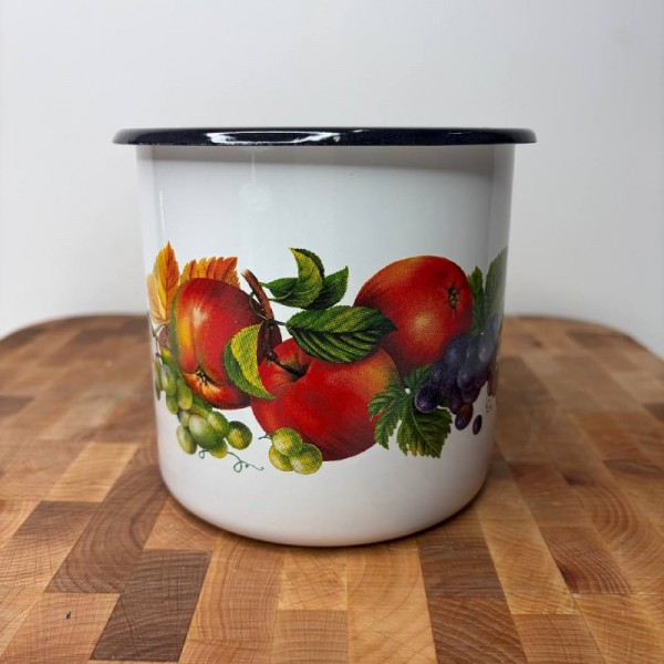 Чашка 1,0 л «Яблука і виноград» - класична емальована чашка для щоденного користування вдома, на дачі чи офісі. Виготовлена зі сталі з якісним емальованим покриттям , є практичною та довговічною.