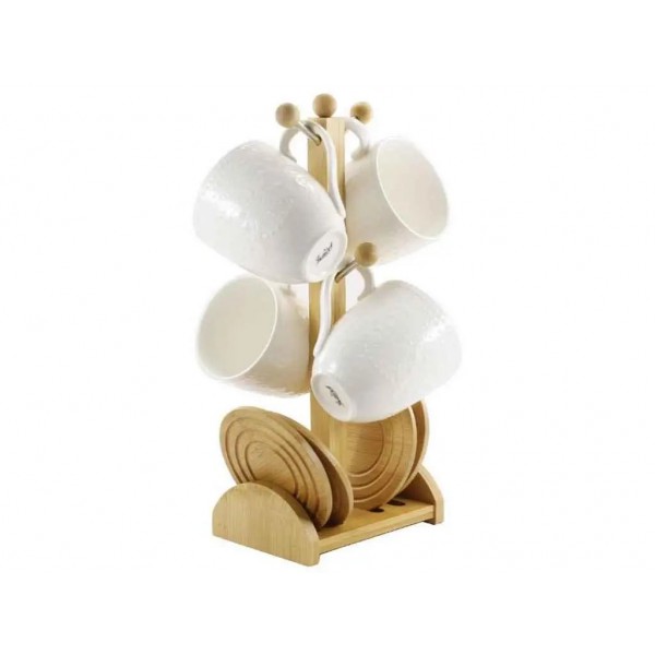 Набір чашок 400 мл з підставками на стійці арт.: PJ03394 виготовлений з порцеляни. Складається з чотирьох чашок 400 мл, чотирьох підставок під чашку та стійки. Підходить для миття у посудомийній машині.