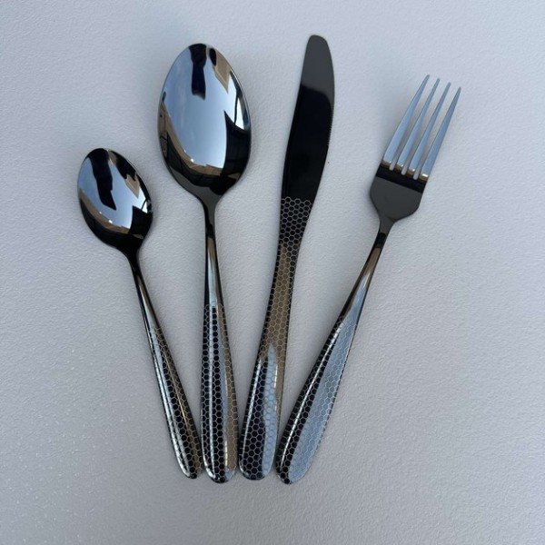 - Комплектація: 4 ложки столові, 4 виделки, 4 ножі, 4 чайні ложки
