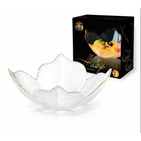 Набір салатників 2 шт 4 пелюстки, золотий кант арт.: 9294-1 (S&T). Матеріал: скло