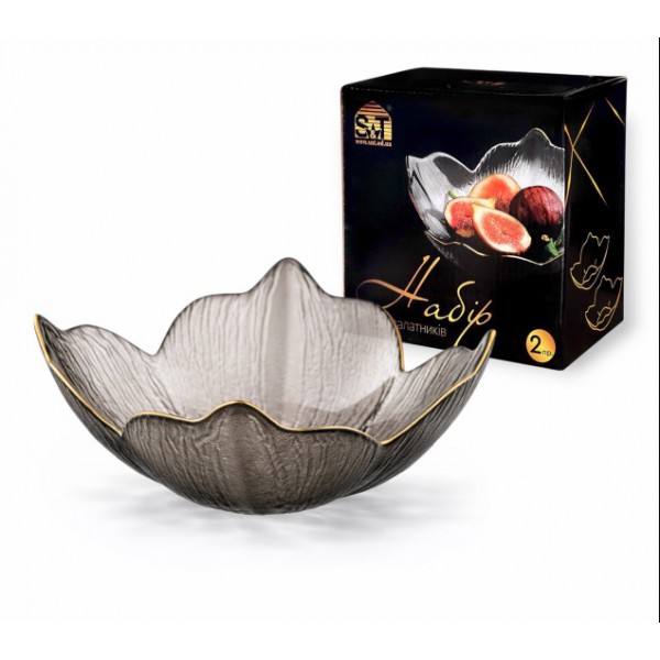 Набір салатників 2 шт 4 пелюстки, золотий кант, Агат арт.: 9294-2 (S&T). Матеріал: скло