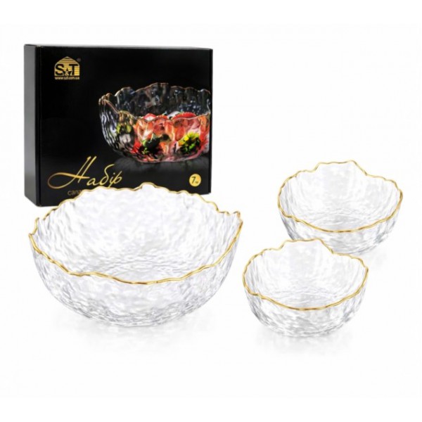 Набір салатників 7 шт, ламаний край, золотий кант арт.: 9292-1 (S&T). Матеріал: скло
