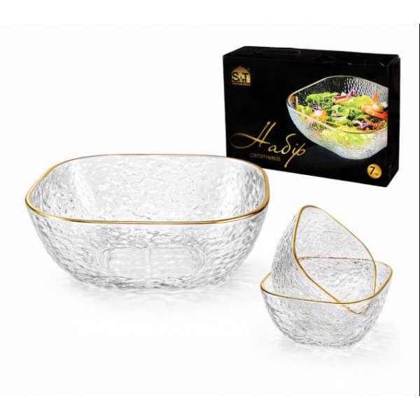 Набір салатників 7 шт, квадрат, золотий кант арт.: 9290-1 (S&T). Матеріал: скло