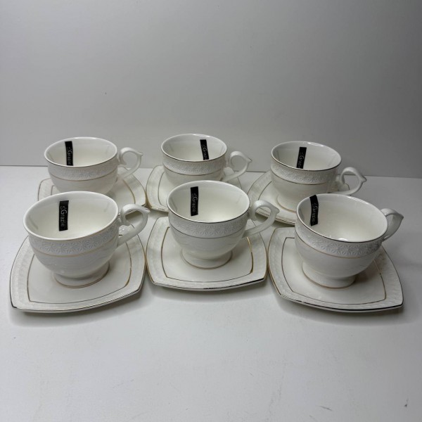Складається набір з 12 предметів: 6 чашок та 6 блюдець. Кожна чашка має місткість 280 мл і круглу форму, що надає їй сучасного вигляду. Зручна форма та широка ручка забезпечують комфортне використання, даючи змогу легко утримувати чашку в руці та насолоджуватися напоєм.