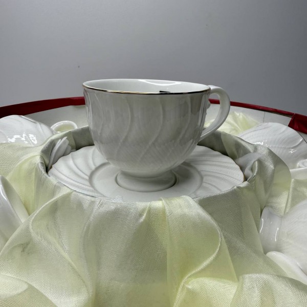 Чайний сервіз «Снігова Королева Хвиля» виготовлений з високоякісного фарфору і має вишуканий дизайн, що робить його ідеальним для будь-яких святкових подій.