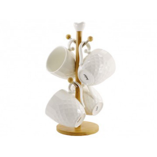 Набір чашок 300 мл 4 шт на дерев'яній підставці арт.: PJ02850 виготовлений з порцеляни. Складається з чотирьох чашок 300 мл, дерев'яної стійки. Підходить для миття у посудомийній машині. Має стильний та сучасний дизайн.