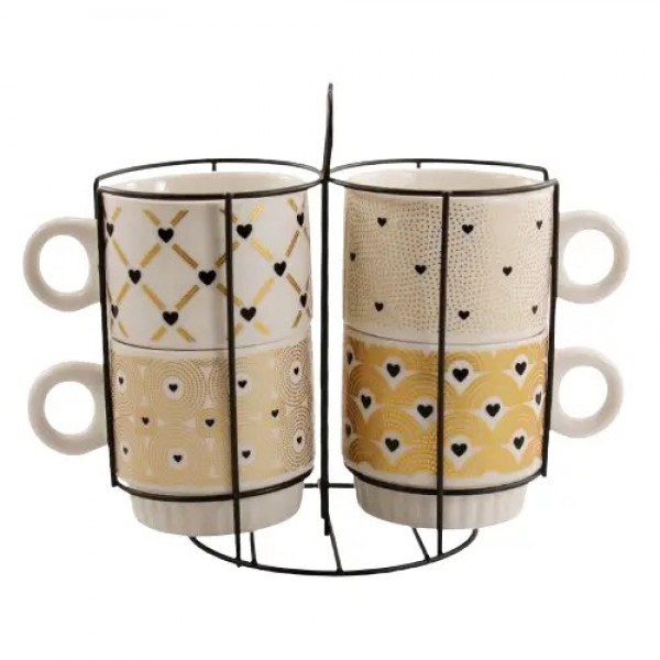 Набір чашок 250 мл 4 шт на стійці White арт.: 676-1 (Interos). Матеріал: порцеляна