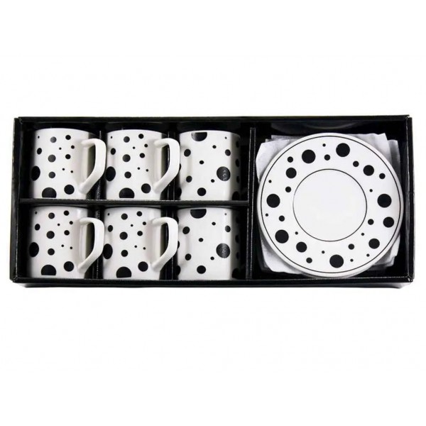 Набір чашок 160 мл 6 шт з блюдцями «Крапки» арт.: SH25031 (Interos). Матеріал: фарфор