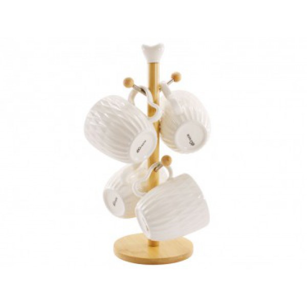 Набір чашок 300 мл 4 шт на дерев'яній підставці арт.: PJ03820 виготовлений з порцеляни. Складається з чотирьох чашок 300 мл, дерев'яної стійки. Підходить для миття у посудомийній машині. Має стильний та сучасний дизайн.