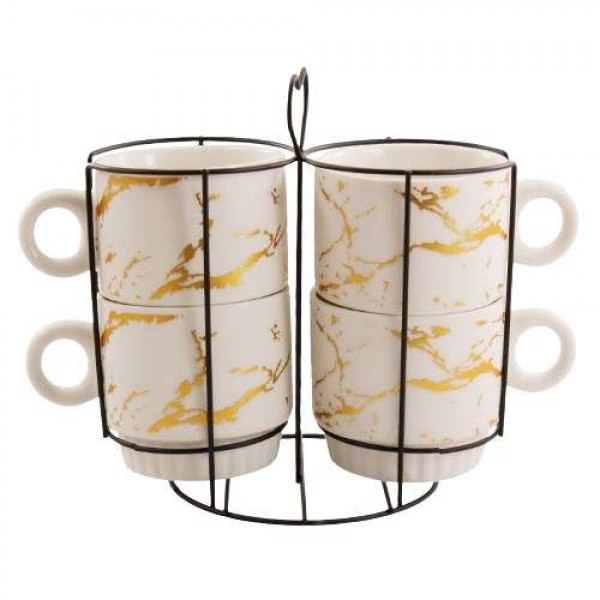 Набір чашок 250 мл 4 шт на стійці «Білий мармур» арт.: 676-8 (Interos). Матеріал: порцеляна