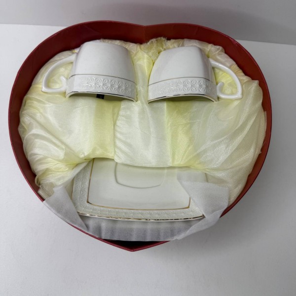 Складається набір з 4 предметів: 2 чашок та 2 блюдця. Кожна чашка має місткість 240 мл і квадратну форму, що надає їй сучасного вигляду. Зручна форма та широка ручка забезпечують комфортне використання, даючи змогу легко утримувати чашку в руці та насолоджуватися напоєм.