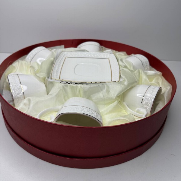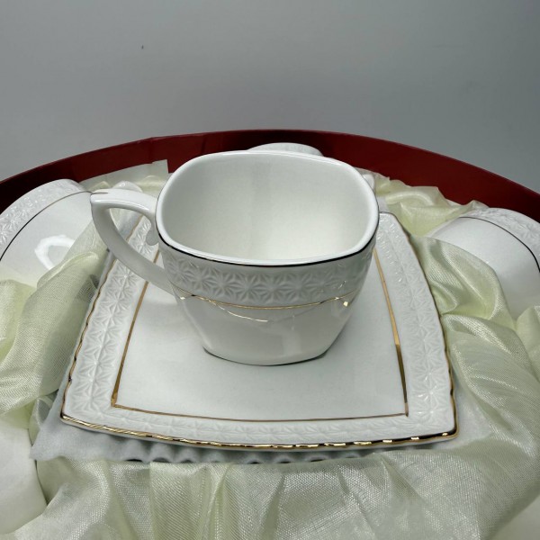 Складається набір з 12 предметів: 6 чашок та 6 блюдець. Кожна чашка має місткість 240 мл і квадратну форму, що надає їй сучасного вигляду. Зручна форма та широка ручка забезпечують комфортне використання, даючи змогу легко утримувати чашку в руці та насолоджуватися напоєм.
